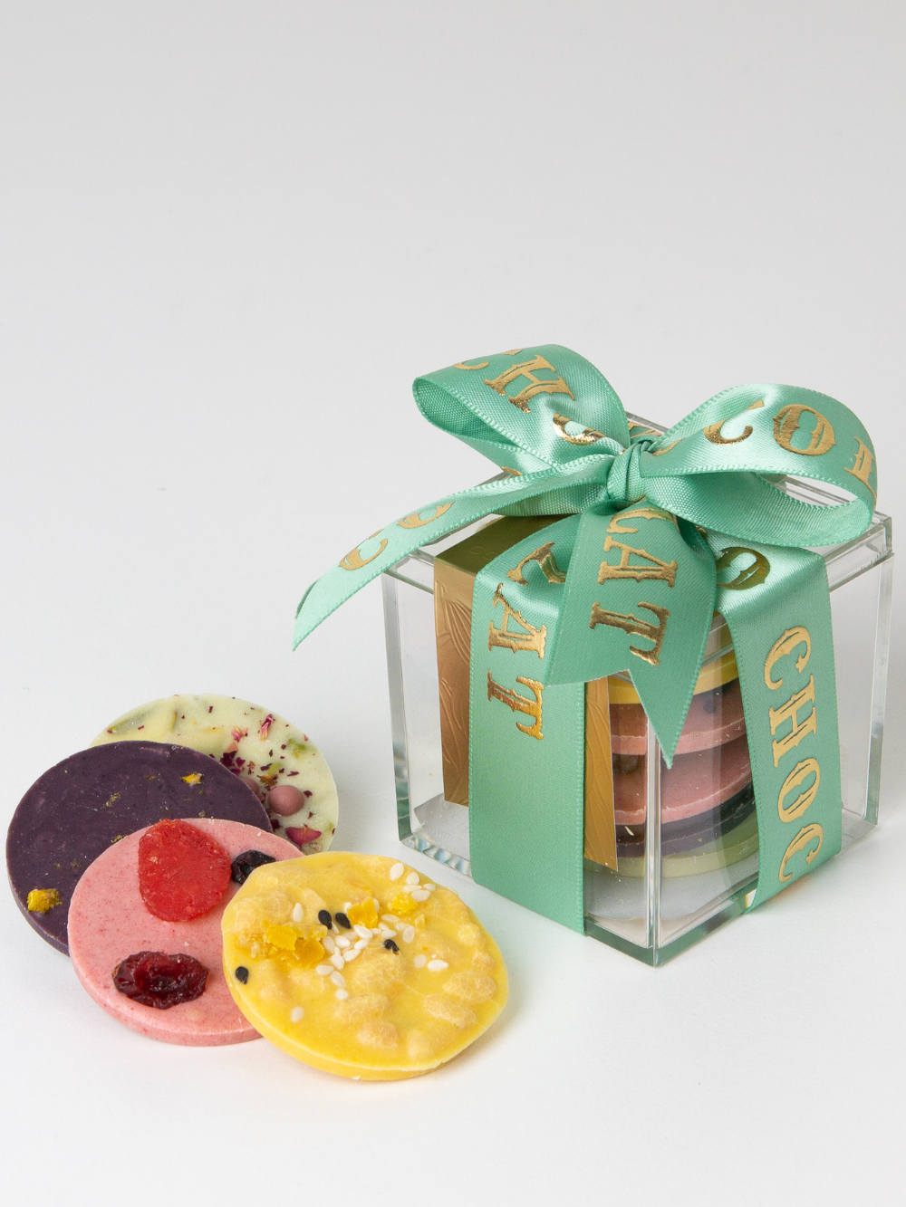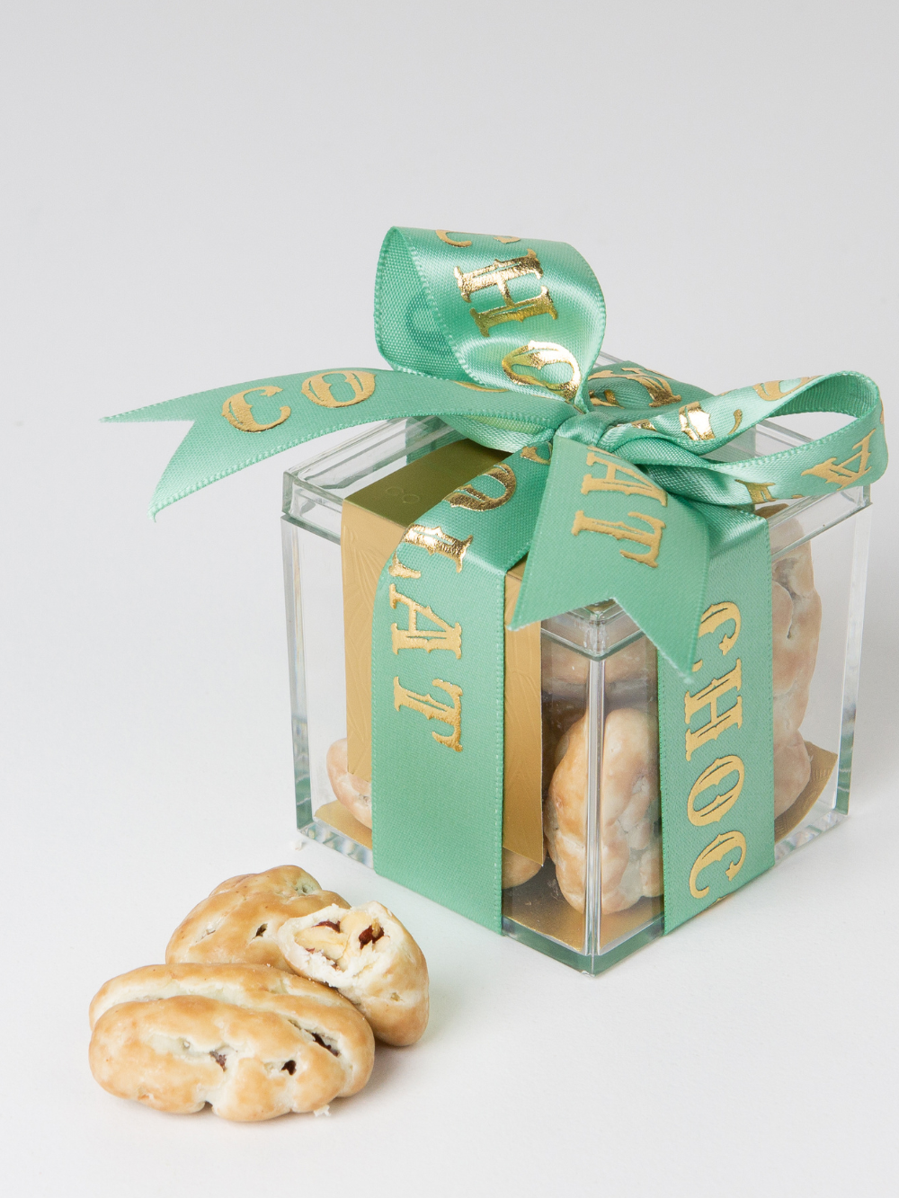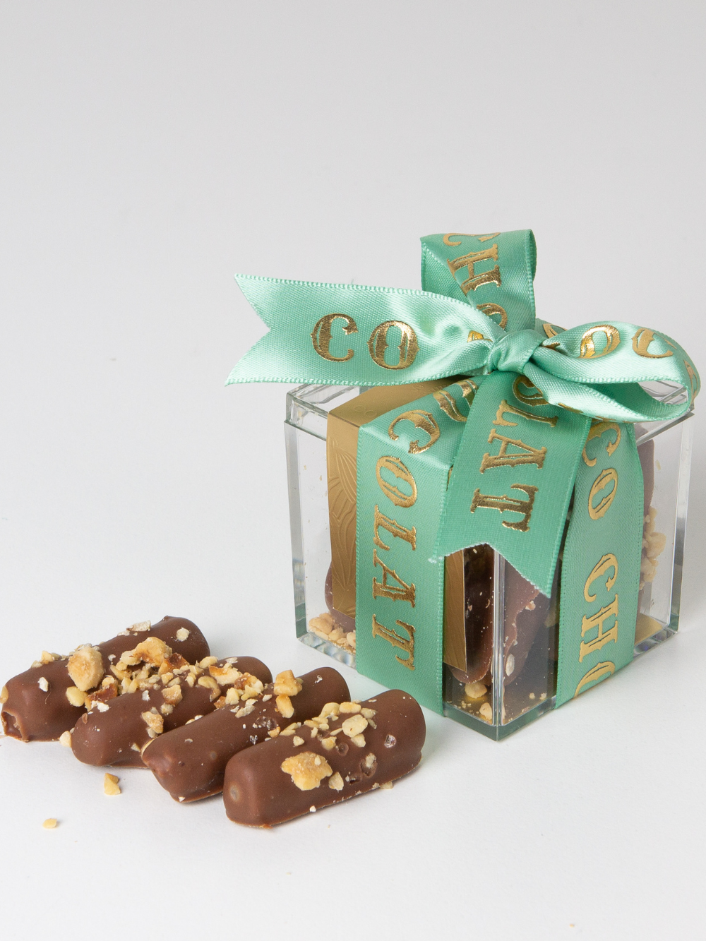 Our elegant, sleek 5x5 cm acrylic keepsake perfectly showcases bite-sized chocolate-coated nuts that sparkle as beautifully as they taste.