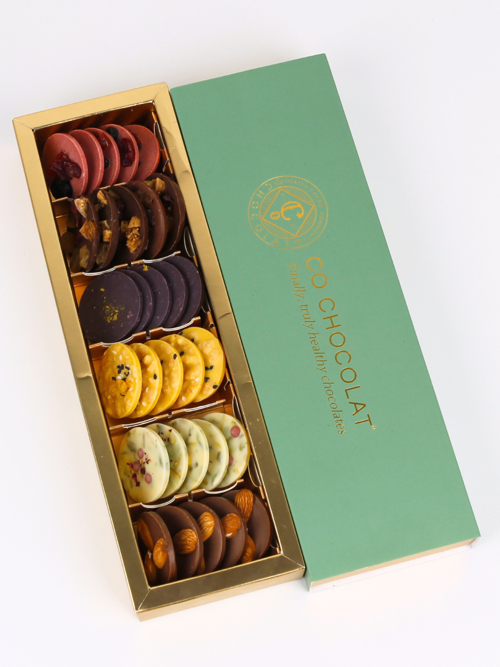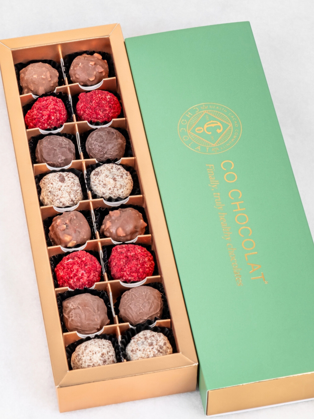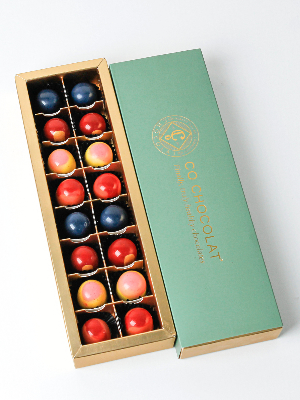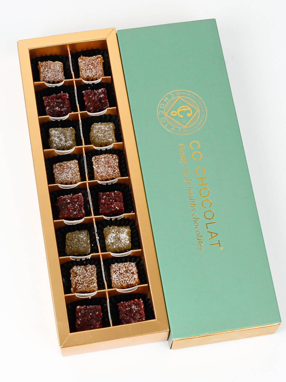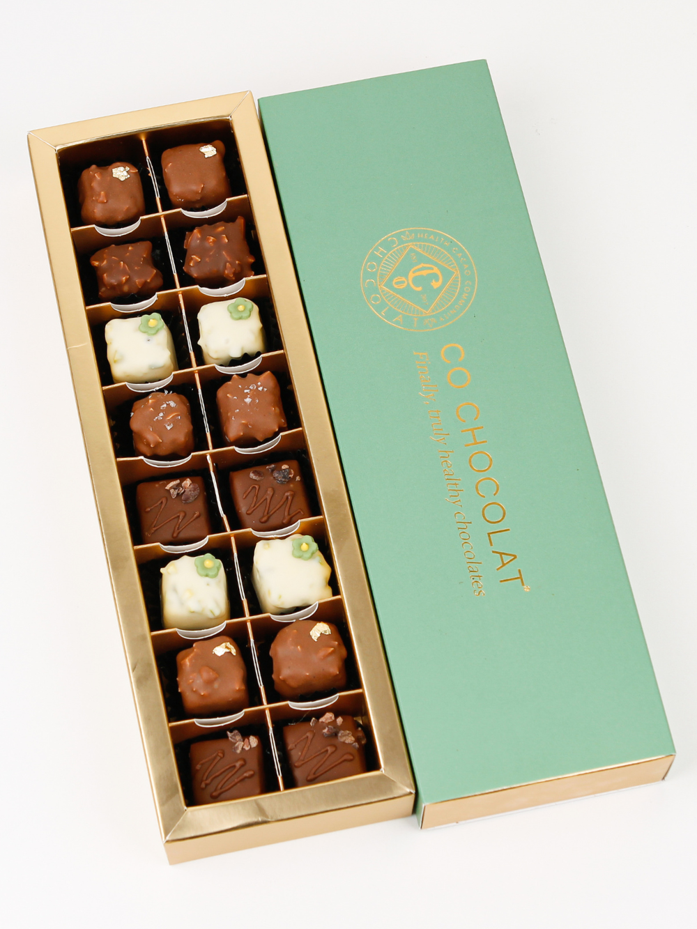 16 pieces of guilt-free Enrobed Chocolates: