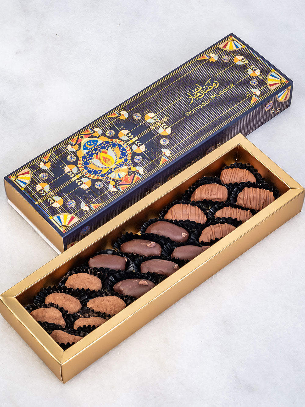 Our bestselling Noor Pencil Box ever since. Choose from premium medjoul dates and juicy khalas dates. Then get them covered with single origin chocolates, or stuffed with the most flavorful ingredients: